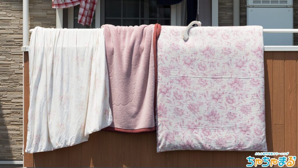 布団本体をなかなか洗えない場合、カバーやシーツをこまめに洗濯することが布団本体を清潔に保つうえで非常に重要です。カバーとシーツは汗・皮脂・ホコリの大部分を吸収してくれる「布団のガード役」です。シーツは週1回、布団カバーは2週間に1回を目安に洗濯することで、汚れが布団本体へ浸透するのを大幅に抑えられます。洗い替えを2〜3枚用意しておくと、洗濯のタイミングを逃さず清潔な状態を維持しやすくなります。