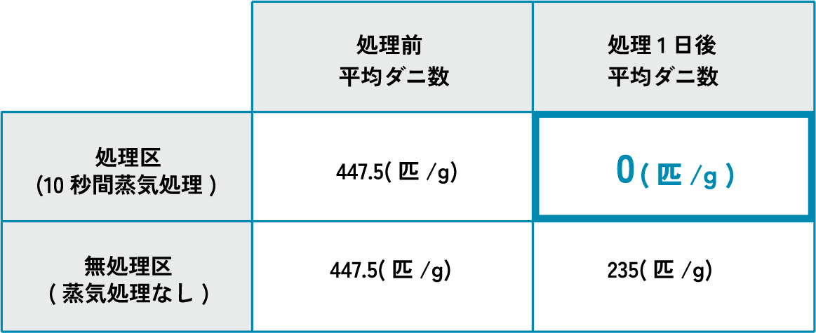 高温殺菌でダニ・カビ・ノミを99%除去。